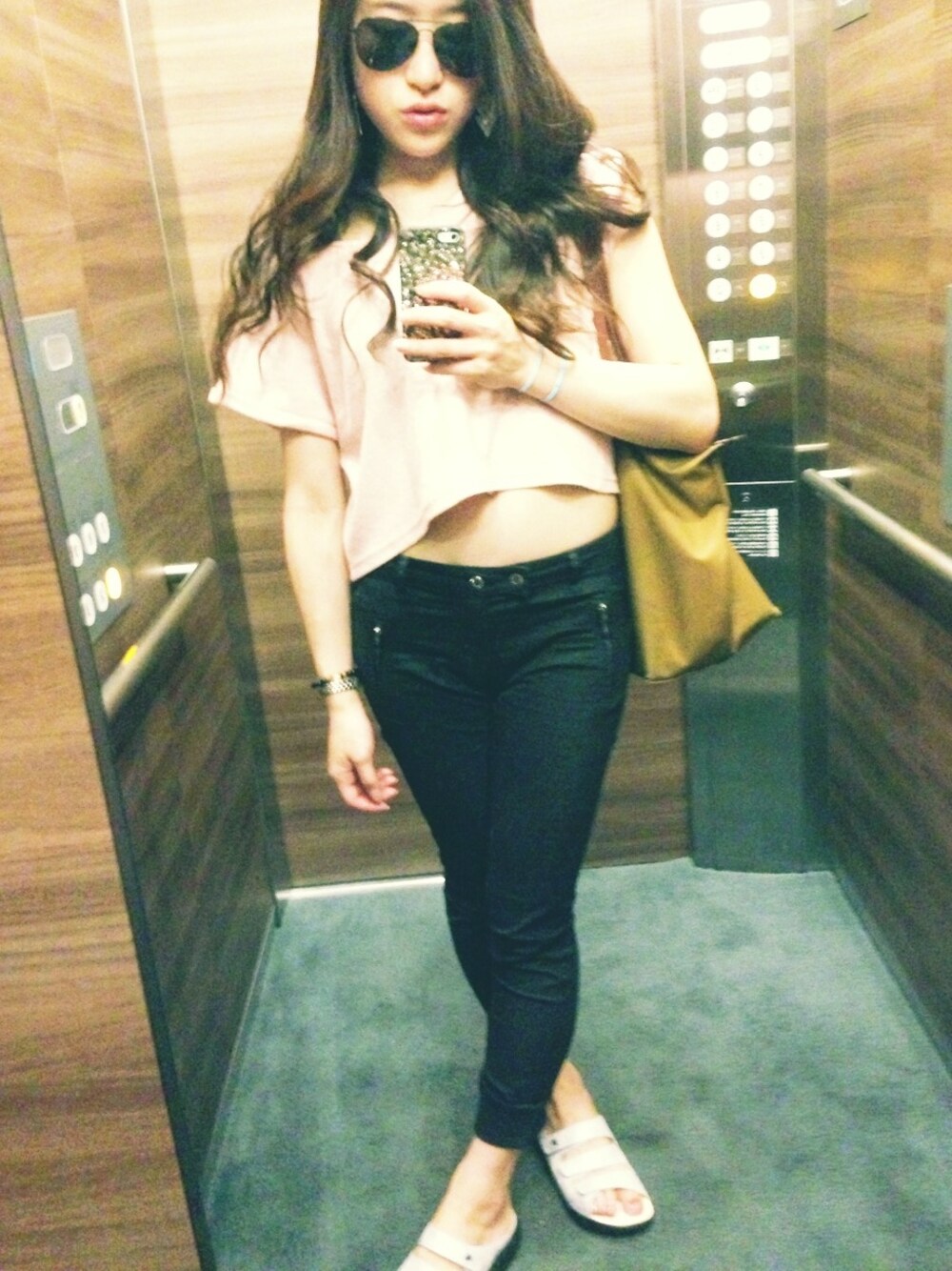 最近太ったのにへそだし… 夏だからと言って勝手に痩せる体質がどっかいって焦る(°_°) パンツ:ZARA 鞄:LONGCHAMP