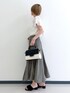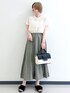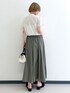 ▼サイズ感 ーーーーー 👚胸元のピンタックとお袖フレアでタイトすぎる感じは全くないです。 👖 店頭がM.L入荷でMサイズ着用。 普段がSサイズですのでゆるっと感じました。ジャストウエストからは少し落として着用しています。 それでもミディ丈でスッキリ履けました。 ▼素材感・着心地 ーーーーーーーー 👚とろみがありさらっと着用できました! 薄手で透け感があるので明るいお色味は白やベージュのインナー合わせがおすすめです。 👖 とろみがあり揺れ感がきれいなフレアスカート。 パッと見ではわからないですが、〖撥水加工〗が施してあり梅雨時期も安心して着用できます! ▼おすすめポイント ーーーーーーーーー 👚しわができにくいさらっと素材ですのでお仕事や長時間の移動の際におすすめです! 小花とドットと無地で印象が変わるのでお色違いでのご購入もおすすめです。 👖 雨用感が強くない素材やデザインで気軽に取り入れやすいです。 カーキのお色味もグレイッシュで上品なお色味でフェミニンスタイルに合わせやすいです。 ▼スタイリングポイント ーーーーーーーーーーー 上下とろみのある上品なアイテム同士で組み合わせました。 オフィスカジュアルにも、ちょっとしたお食事にも、もちろん日常使いでも! どんな場でも使いやすいベーシックな組み合わせです。