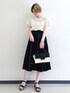 ▼サイズ感 ーーーーー 👚胸元のピンタックとお袖フレアでタイトすぎる感じは全くないです。 ふわっとしたシルエットで着用いただけます! 👖 ウエストのサイドで調整が効くので、ジャストサイズを見つけやすいです! Sサイズで少ししぼることでぴったり着用できました! 丈感は膝下で短めですので、身長問わず使いやすいです。 ▼素材感・着心地 ーーーーーーーー 👚とろみがありさらっと着用できました! 薄手で透け感があるので明るいお色味は白やベージュのインナー合わせがおすすめです。 👖 しっかりしたデニム素材で形きれいになります。サイドのプリーツのおかげで柔らかみも出てきてカジュアルになりすぎないです。 ▼おすすめポイント ーーーーーーーーー 👚しわができにくいさらっと素材ですのでお仕事や長時間の移動の際におすすめです! 小花とドットと無地で印象が変わるのでお色違いでのご購入もおすすめです。 👖 grove毎シーズン大人気のスカート! シーズンレスで使えるので1枚あると長く着用いただけます♡ シンプルなトップスも甘めブラウスもカラーニットも、なんでも合わせやすいです! ▼スタイリングポイント ーーーーーーーーーーー レトロな雰囲気で甘めなドットブラウスをフェミニンなフレアスカートでとことん甘めに仕上げました! スカートの素材をデニムにすることで、大人フェミニンになります。