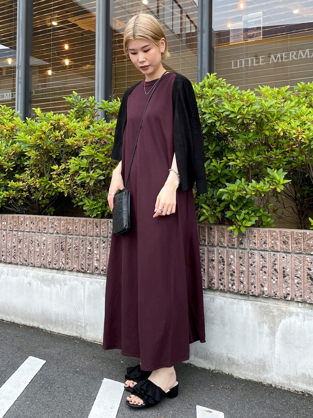 ▼サイズ感 ーーーーー 👗ゆるっと大きめです。 丈感を長めに着たかったのでMサイズで普段よりサイズをあげて着用しています。 ▼素材感・着心地 ーーーーーーーー 👗さらっとしていて快適でした! 接触冷感機能付きでシャリ感がありひんやり着用できます。 ▼おすすめポイント ーーーーーーーーー 👗どの色もきれいでお肌をきれいに見せてくれそうなカラーバリエーションです♡ 夏でも着やすいさらっとリラックス!だけどきちんと上品見え! そんな嬉しいポイントが詰まったワンピースです◎ ▼スタイリングポイント ーーーーーーーーーーー ディープなパープル味のあるブラウンをブラックで引き締めています! groveでは珍しいカラーだと思います。 ワンピースを大人っぽく着たい方にとってもおすすめです◎