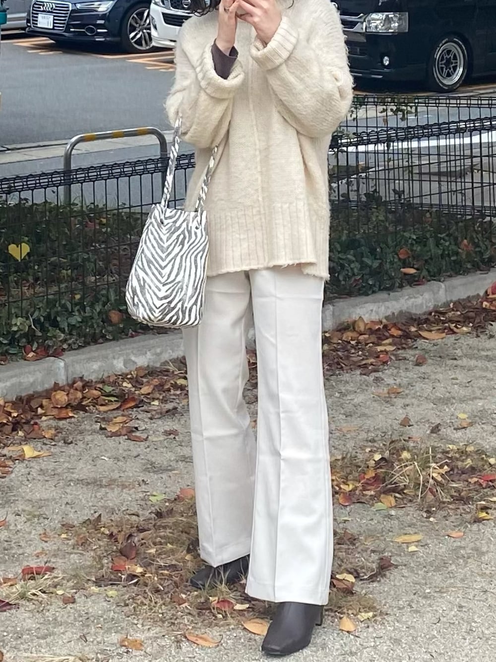 ホワイトコーデの中にインナーとブーツはブラウンで締めました👜 バックはGRLです!プチプラなのに高見えするからカワイイしか出ない😭◎ 全体が無地でシンプルだったのでゼブラ柄を取り入れてアクセント入れてます☁️ w closetのカーディガンは2WAYで今回はボタンを後ろにして着用してます。 後ろバージョンも載せてるので見てみてください🎶 ほんのりクリームのお色味が超かわいいです🤍 Instagramもよかったら覗いてみてください👀