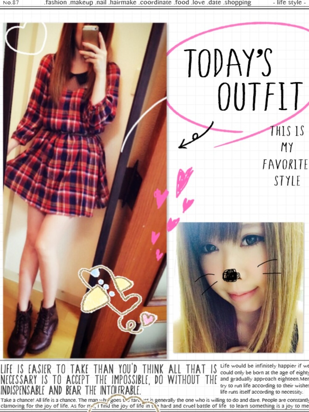 秋色チェックコーデ(´-`).。oO 貰い物のワンピースです* サイズが大きかったのでベルトで調整..