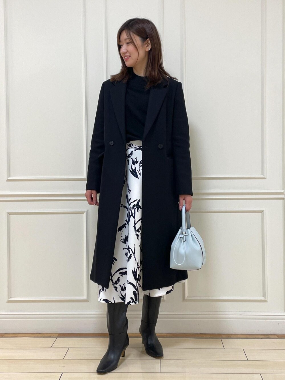 主役になる花柄スカートを ロングコートと合わせてチャレンジしやすいコーディネートにしました♪