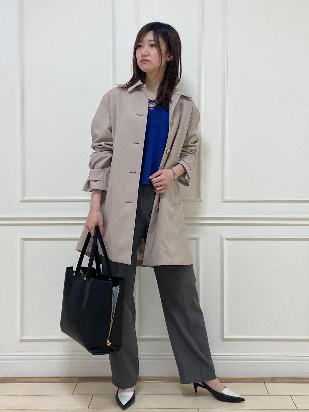 サイズ感、丈感です共に着やすく ニットの厚みやデザイン、身長問わずに 羽織りやすいスプリングコートです◎ ※アクセサリーは私物です。