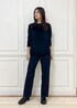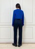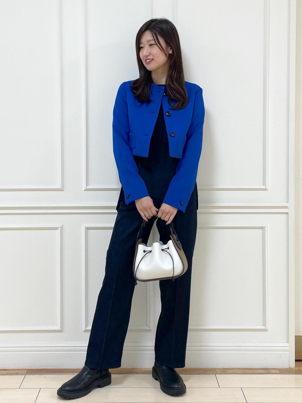 カラーがポイントのコーディネート。 ボタンが黒なので、インナーもカラーを合わせてみました。 シャツアウト、シャツインどちらの着方でもオススメ。 (1枚目のみジャケット×シャツアウトの写真です。) デニムもシルエットがとっても綺麗で シルク混なので柔らかく履きやすいので オールシーズンでオススメです◎ ※トップスはGGM34350着用。 ※ブーツは私物です。