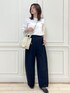 タックが効いたワイドめなテーパードパンツを活かして トップスインのコーディネートにしました。 シンプルなので、 大ぶりなアクセサリーを付けてもオススメです◎
