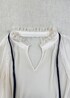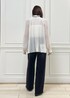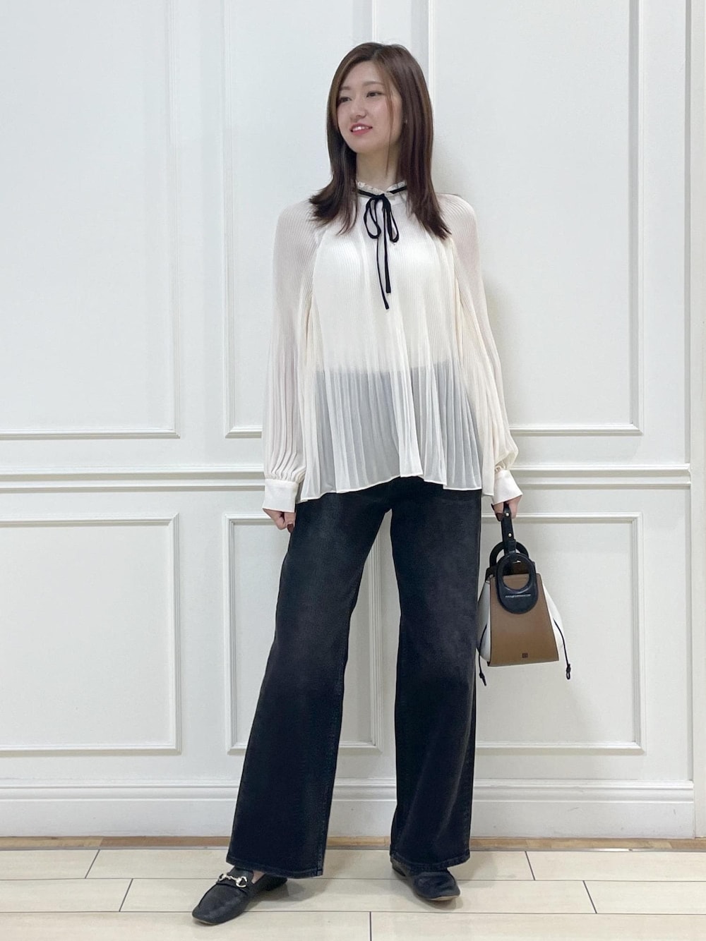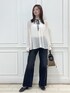 バイカラーのリボンブラウスがポイントの デニムコーディネート。 シャツインでもアウトでも どちらもオススメです☆ プリーツブラウス 品番:GGH35130 ¥28,600(税込)