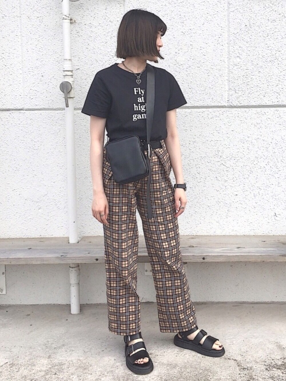 去年買ったチェックパンツ タック入りだからトップスインした方がかわいいな😚💗 サンダルとも相性良し👌🏼