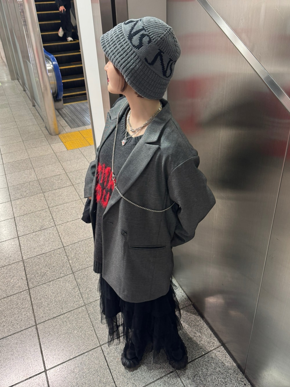 モノトーンコーデに赤の差し色が可愛いニット❤️👍🏻 JEANASISコーデ☆☆☆
