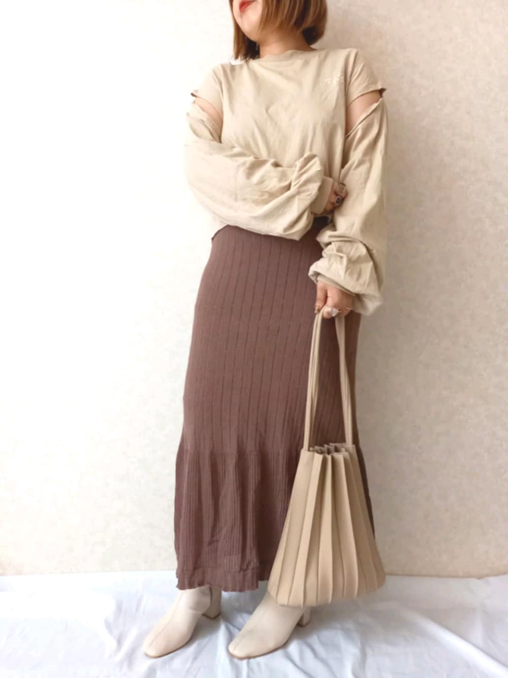 見ていただきありがとうございます✨ いいねやお気に入りフォローなどしていただけたら嬉しいです😊 なるべく返させていただきます! uniさん、2gkさん素敵な📁に入れていただきありがとうございます✨ “クロシェ編みスカート" 夏に流行ったクロシェ編みスカートを秋にも取り入れてみました! 生地がちょっとギリギリって感じもしますが、カラーが秋カラーだったので大丈夫です✨ 足元をショートブーツにしたのと、バッグの素材で秋感を出しました! 小物を変えるだけで一気に変わりますよね😊 トップスは袖のところに特徴があってすごく可愛いです😊 ボリューム袖だし、色も可愛いです✨ 実は後ろにもデザインがあって可愛いです😊 全体的にIラインですっきり見えるように工夫してみました✨