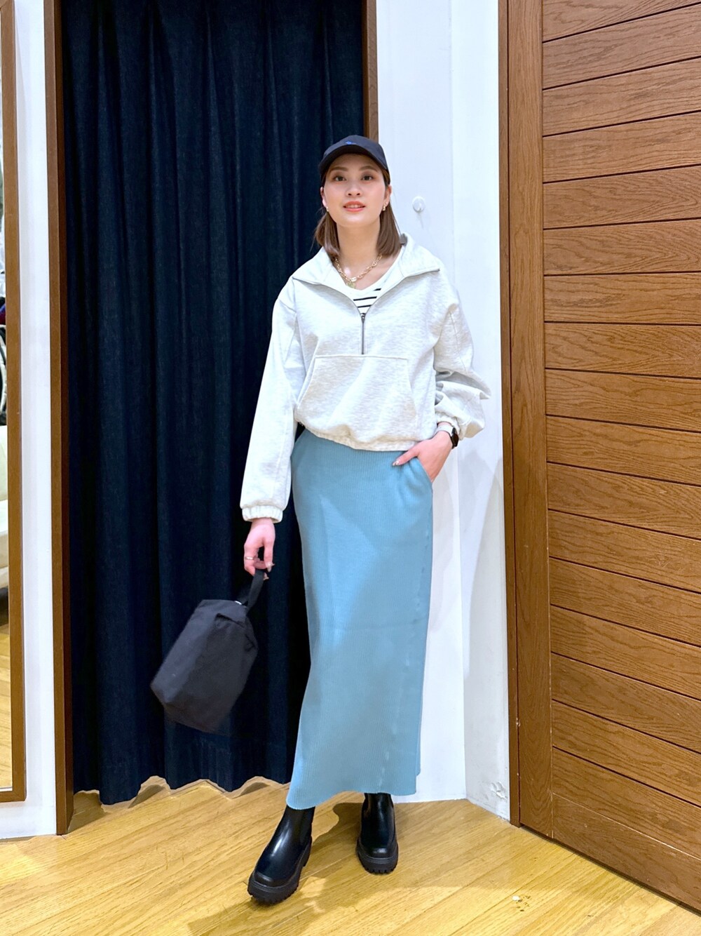 ayakabf(BAYFLOW mozo ワンダーシティ)のスウェット「ハーフZIPショートプルオーバー」を使ったコーディネート