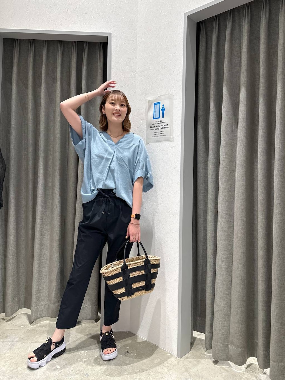 ayakabf(BAYFLOW mozo ワンダーシティ)のかごバッグ「PUコンビカゴバッグ」を使ったコーディネート