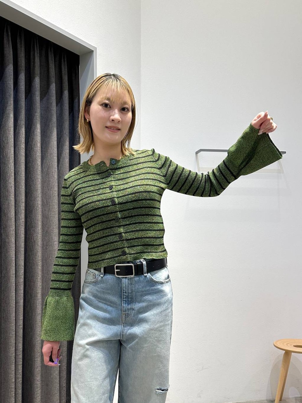 172cmの私が着用すると... 【トップス】袖口フリルボーダーニット ●サイズ感:タイト ●軽さ:軽い ●厚み:薄い ●やわらかさ:柔らかい ●伸縮性:伸びる ●透け感:透けない 丈感短めのスタイルよく見えるトップス✨ 袖のフリルがポイントで前開けてカーディガンとしても使えるよ😄 細見えしてくれるしストレッチ性も効いていて着やすさ抜群✨ ____________ 【ボトムス】ダメージワイドデニム ●サイズ感:ゆったり ●軽さ:軽い ●厚み:若干厚い ●やわらかさ:柔らかい ●伸縮性:伸びない ●透け感:透けない ワイドすぎないデニムだからワイドが苦手な方も履きやすいよ! ダメージも程よくウエストは少しゆったり😄 オールシーズン履けるデニム!! ______________ mozoワンダーシティのAYAKAです😄 27歳/6歳男の子ママ/骨格ストレート/イエベ 実は下っ腹ぽっこりに悩んでます…😢 体型カバーと細見えするスタイリングが大の得意💖 Instagramでは「あやかなファミリー」で日常生活をお届けしてます♡ 是非チェックしてフォローもしてね✌️