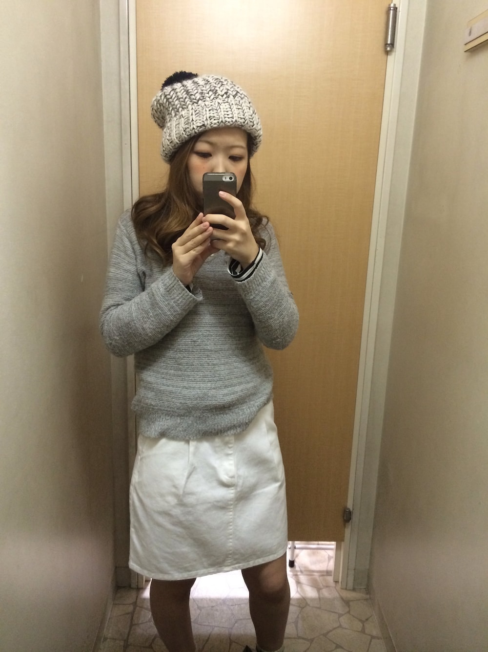 ニット帽のブランド名忘れました、、、😭今年購入してます♡ラフな格好に最近ハマってます♡可愛過ぎずかっこよすぎないよう白スカで爽やかに♡