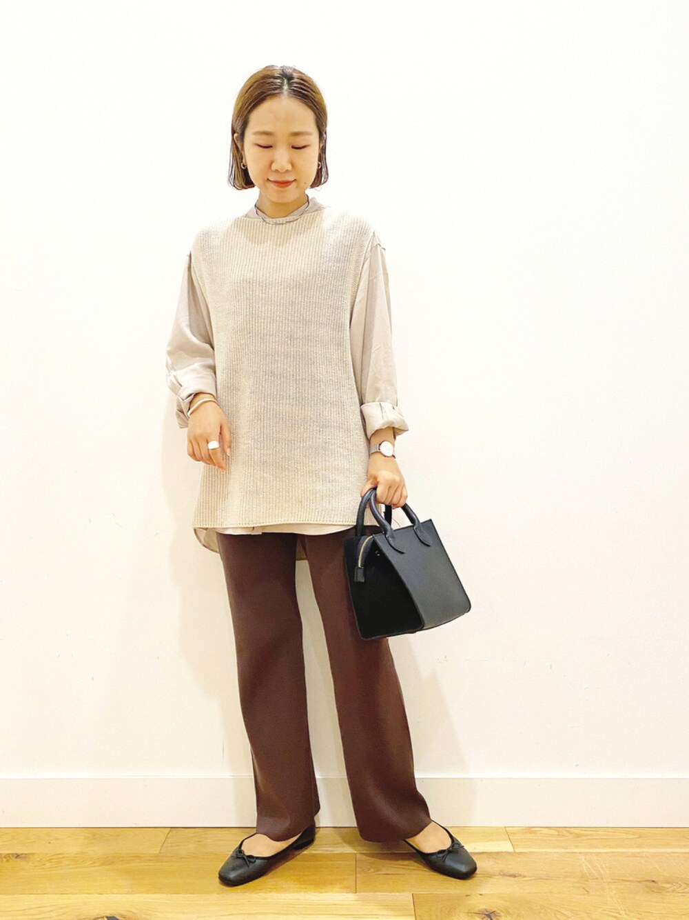 ニットベストのコーデ🍂 シンプルなベストだから着回しやすいです◎ Instagram : @g_ayaka_