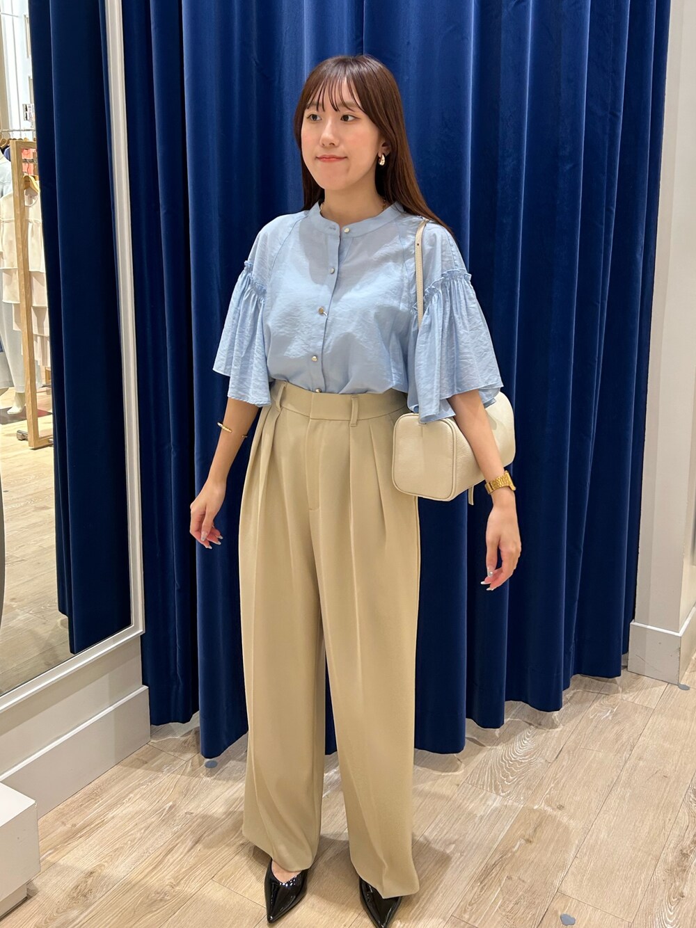 tops 38サイズ(ワンサイズ) シアーブラウスです! 袖のフリルが二の腕をカバーしてくれるので スッキリ着用できます! 柔らかく、薄い素材でハリが出過ぎず 膨張しません! 1枚で着映えするだけでなく羽織としても 使えるアイテムです! pants 36サイズ 強撚ツイルワイドパンツです! 裾にかけてしっかりワイドになっており トレンド感を取りつつツータックなので 腰回りはスッキリ見えします! 落ち感もキレイなので腰も張らず、 トップスの形問わず使いやすいシルエット! シワになりづらいのもポイントです! インスタグラムにもオススメアイテム 載せていますのでぜひチェックしてみて ください💁♀️ @ayk_nol