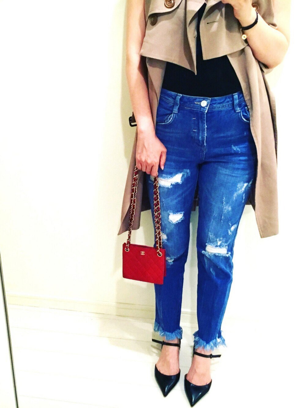 お気に入りZARAのデニムに、赤をワンポイントに。 instagram ✈︎✈︎✈︎ @aya_kaat