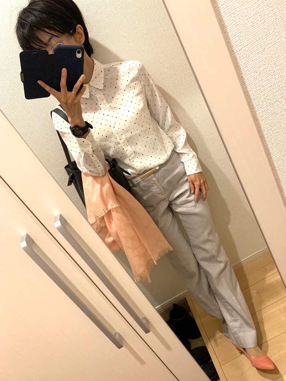 見てくださりありがとうございます😊 週末!カラッとしてますが、暑くなりましたね。 爽やかを意識しての白×グレー×ピンク。 三首隠して笑 ワイドパンツ×パンプスは、私の中で女!なので、敢えてシャツを上まで止めました。