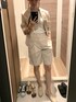 ユニクロ✖️セオリー ええ…買ってしまいましたw XS154センチ昭和体型wお尻大きめ( ̄▽ ̄)こんな感じデス。軽い、着心地良し。見た目は、お値段以上とは、言わないけど、十分だよー♪速乾性とか、伸縮性とか機能性からしたらお値段以上!!あと、ボタンがこの値段なのにマーブルっぽいやつで嬉しかった☆色は、アイボリーだね。黄色味系の優しいベージュです。 ご参考になれば!