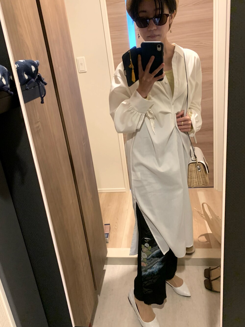 シルクのパンツは、留袖のリメイクです♡ ロングシャツにリラックスパンツだけど、ちょい高級な感じ?これがオトナ、なんちゃって…
