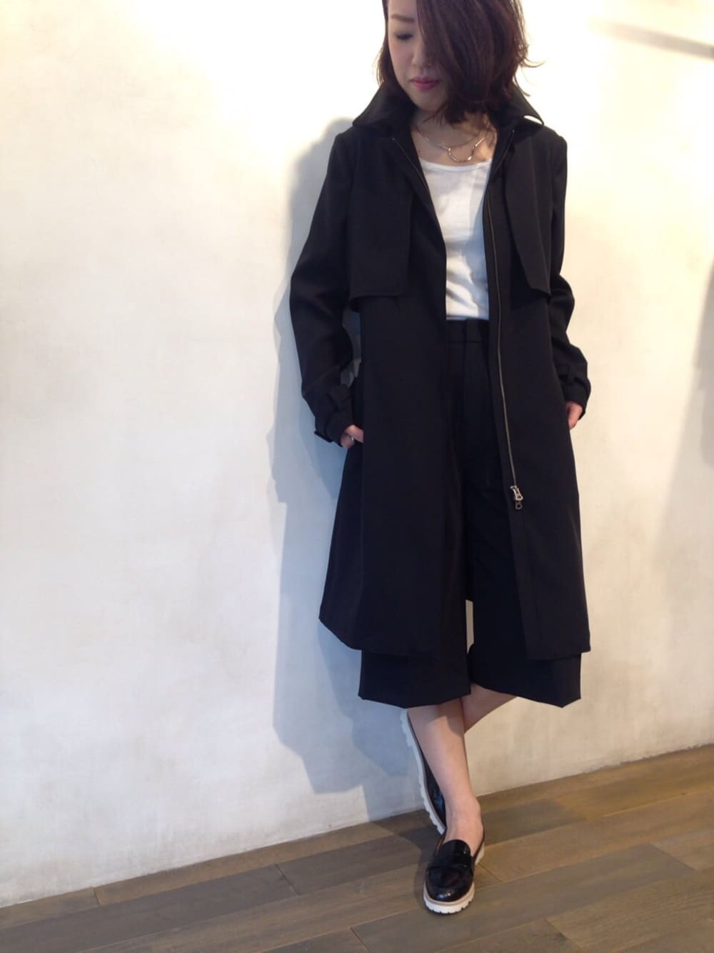 youozekiのトレンチコートはものすごく形が綺麗です。 春だけどあえての、ALL BLACKで。