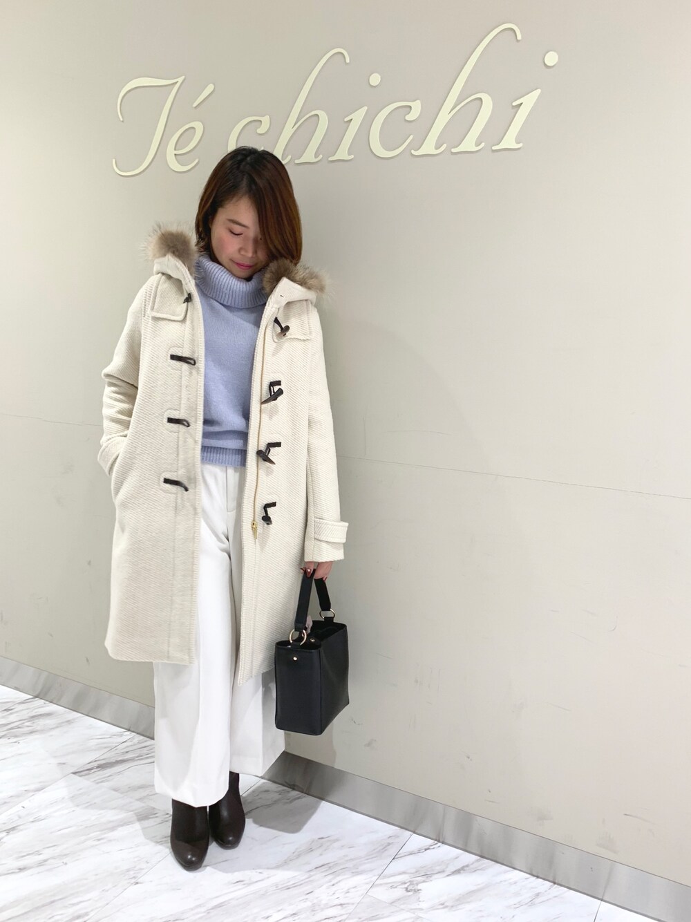 こんにちは! お久しぶりです! Techichi高崎オーパ店の栗原です^ ^ いつも見ていただきありがとうございます! 今日はいきなり通信障害になってびっくりしましたね^^; 一気に冬らしくなってきたので、 今日は白をメインにしました!! 白とブルーは合いますよね〜 白のワイドパンツにする事で可愛らしさをおさえました^ ^ ダッフルコートはとてもすっきりした見た目で、形がとても綺麗です♪