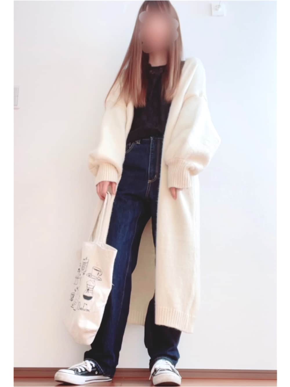 カーディガン以外は全てプチプラな物です( ¨̮ )✨ トートバッグも100均です♪