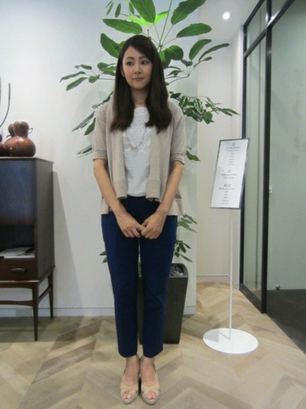 大人カジュアルなリラックススタイルの中にも、小物使いで女性らしさを取り入れました。