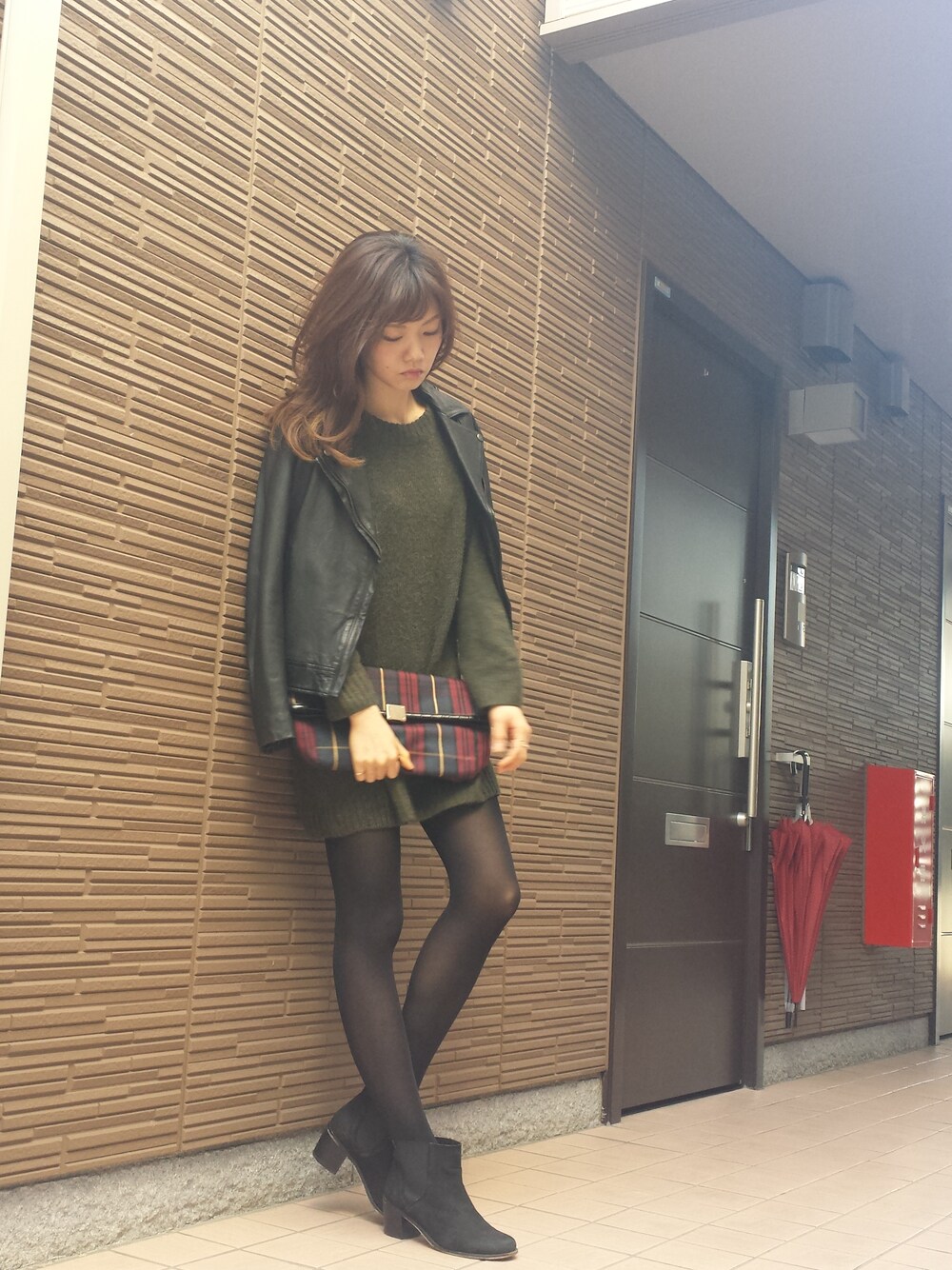 ニットワンピ…H&M 昔は全く着なかったニットワンピですが、ズルっとしたカジュアルなものなら挑戦できるようになりました。 ライダースとブーツを投入し、女らしくなりすぎないように。