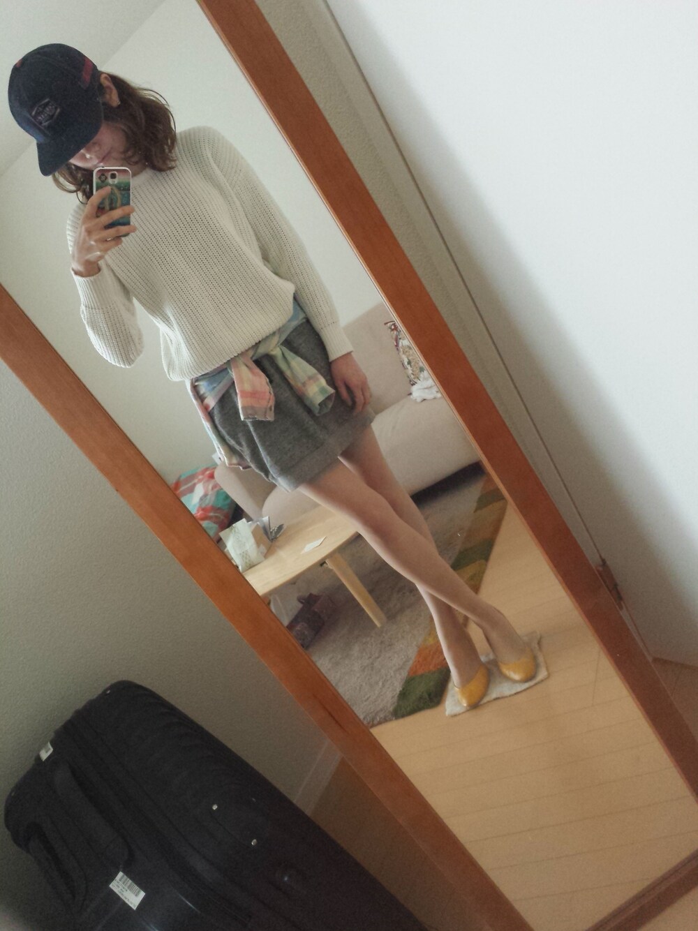 ニット…American Apparel スウェットスカート…ROSE BUT シャツ…snidel パンプス…oriental traffic キャップ…New Yorkのused