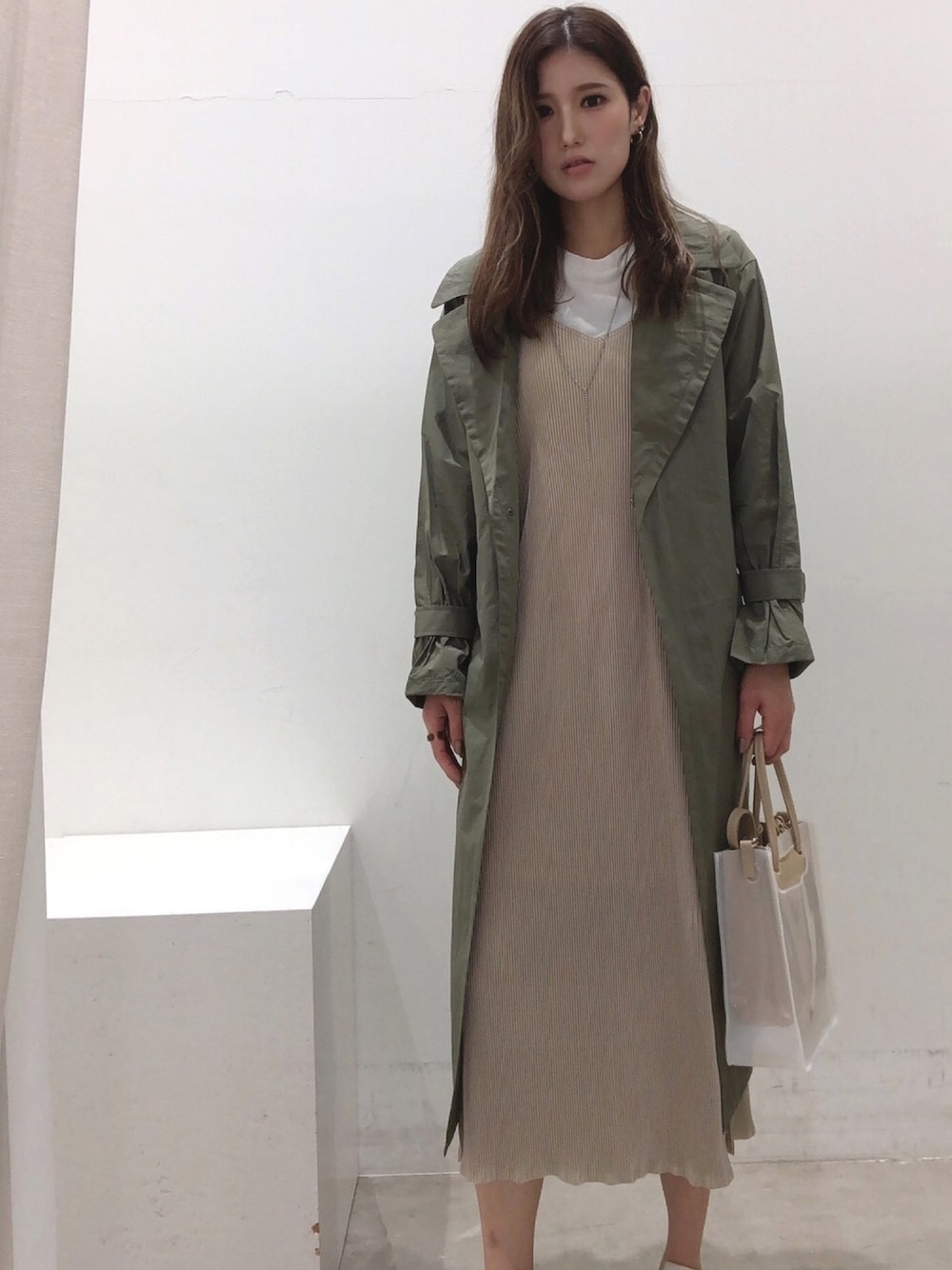 ご覧頂きありがとうございます໒꒱ 中のワンピースは プリーツワンピースでスタイルよく 見えるアイテムです♡