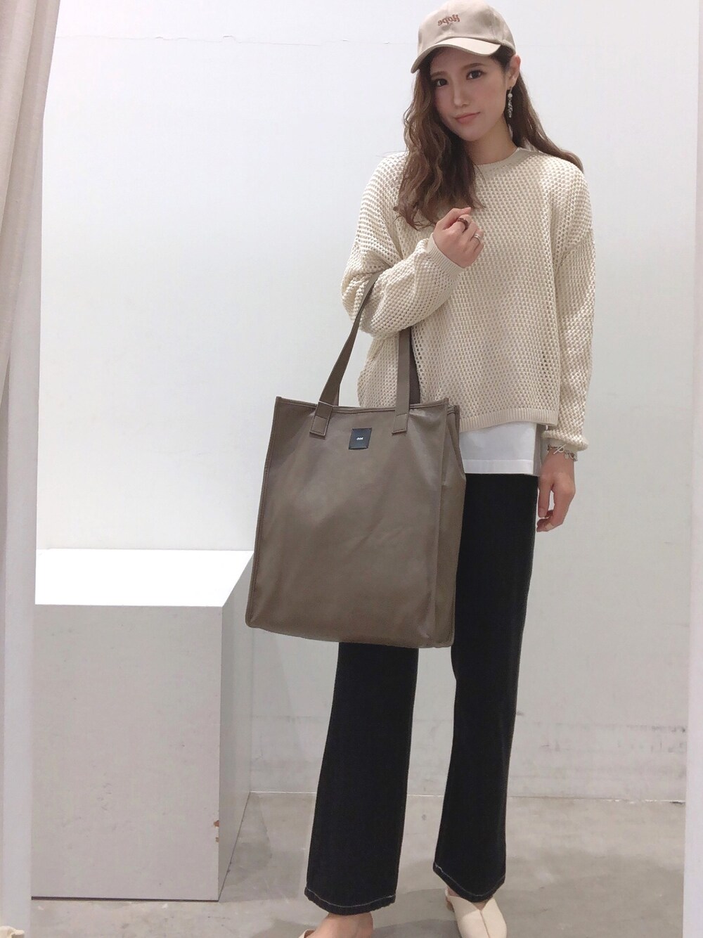 ayaのトートバッグ「フェイクレザースクエアトート〇」を使ったコーディネート