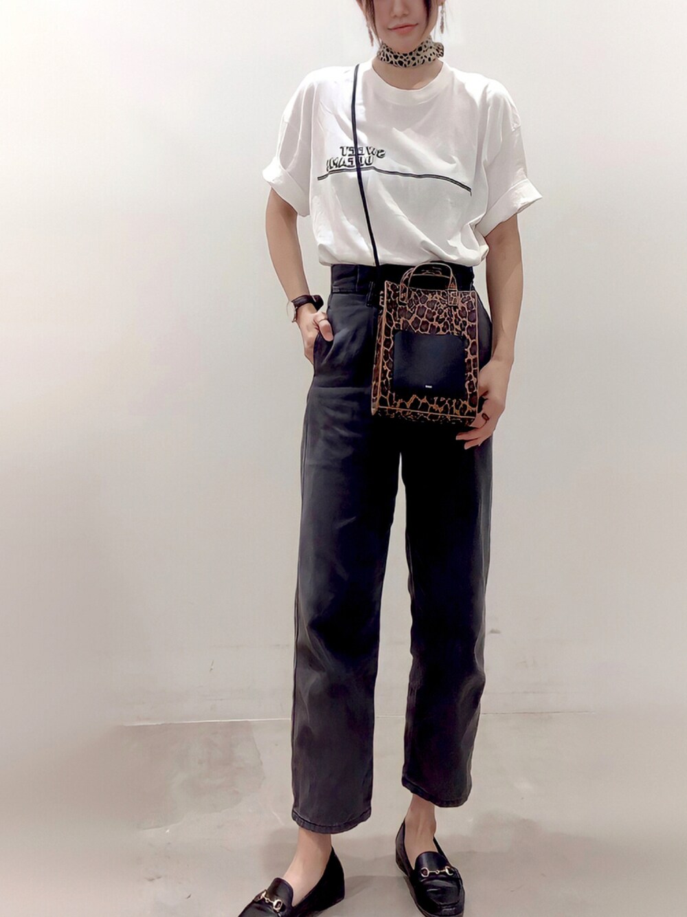 着用✰ 秋でも暑い日は Tシャツ⸝⋆ ハイウエストのデニムは 脚長効果◎