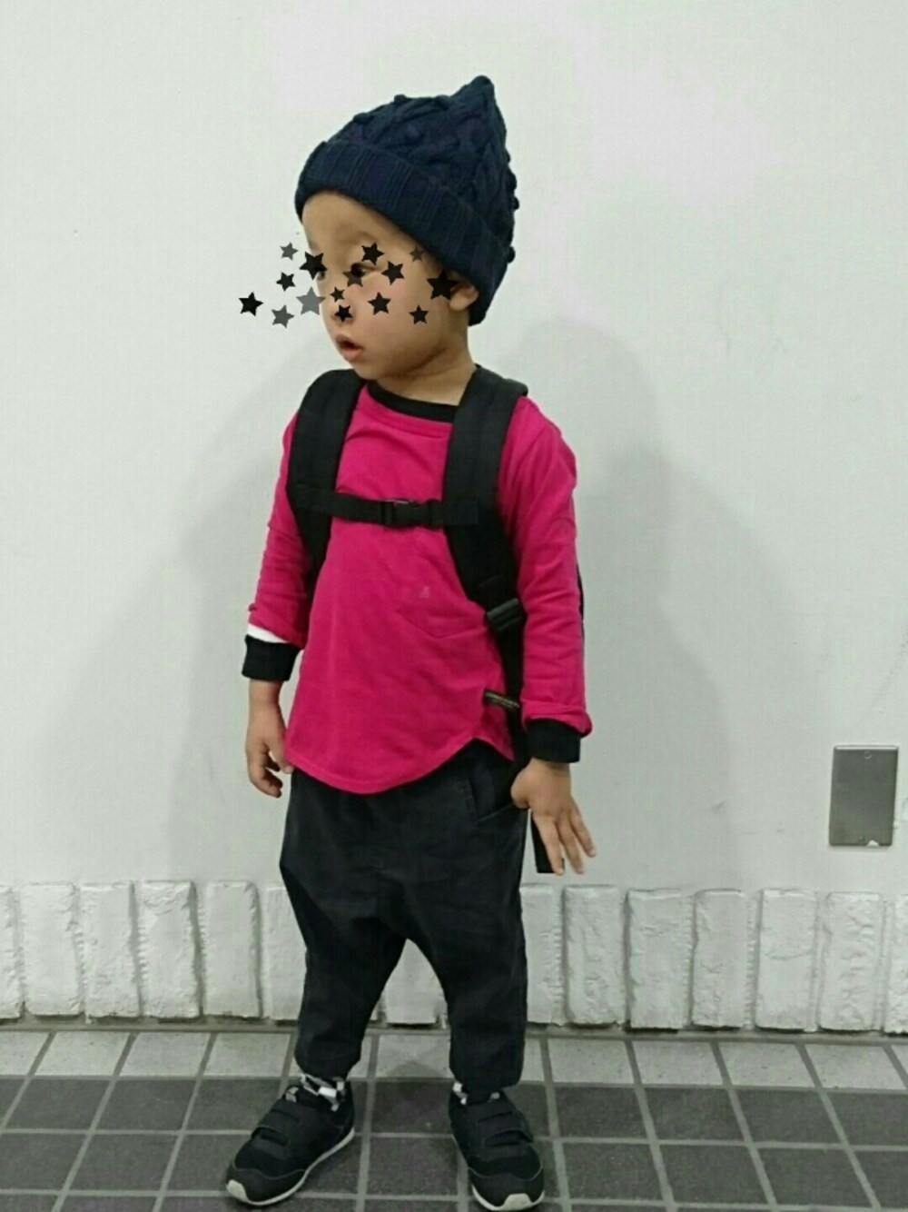 少し風邪気味なので、重ね着させました。 ニット帽久しぶりに合わせると新鮮。 男の子なので基本動きやすいパンツを選びます。