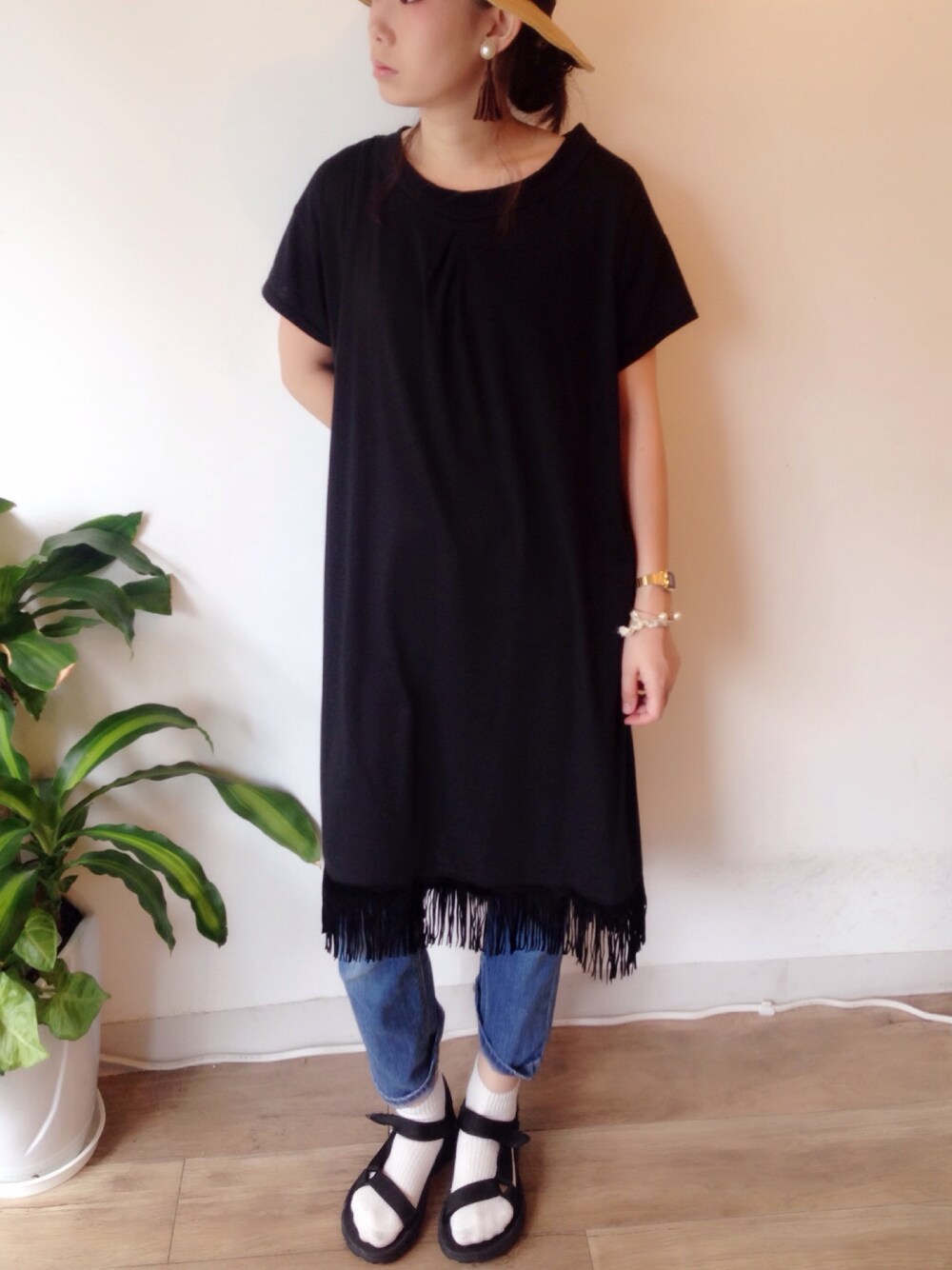 BROOCHのタッセルワンピースに famのタッセルイヤリングを合わせてみました😊 楽チンコーデでお気に入り❤️ 大分 美容室 fam Tel 097-574-6708