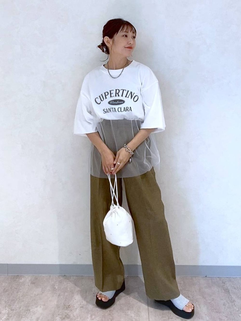 ⭐各アイテムのおすすめポイント  ̄ ̄ ̄ ̄ ̄ ̄ ̄ ̄ ̄ ̄ ̄ ̄ ̄ ̄ ̄ ̄ ̄ 【トップス】 チュールが重なってるトップスです! 丈が長くてルーズに着ていただけます! カジュアルにも甘めにも使えて着回したくさんできます✨✨ 【ボトムス】 きれいめパンツ! 生地がサラサラしていて通気性もとっても良いです! センタープレスが効いていてシルエットきれいです