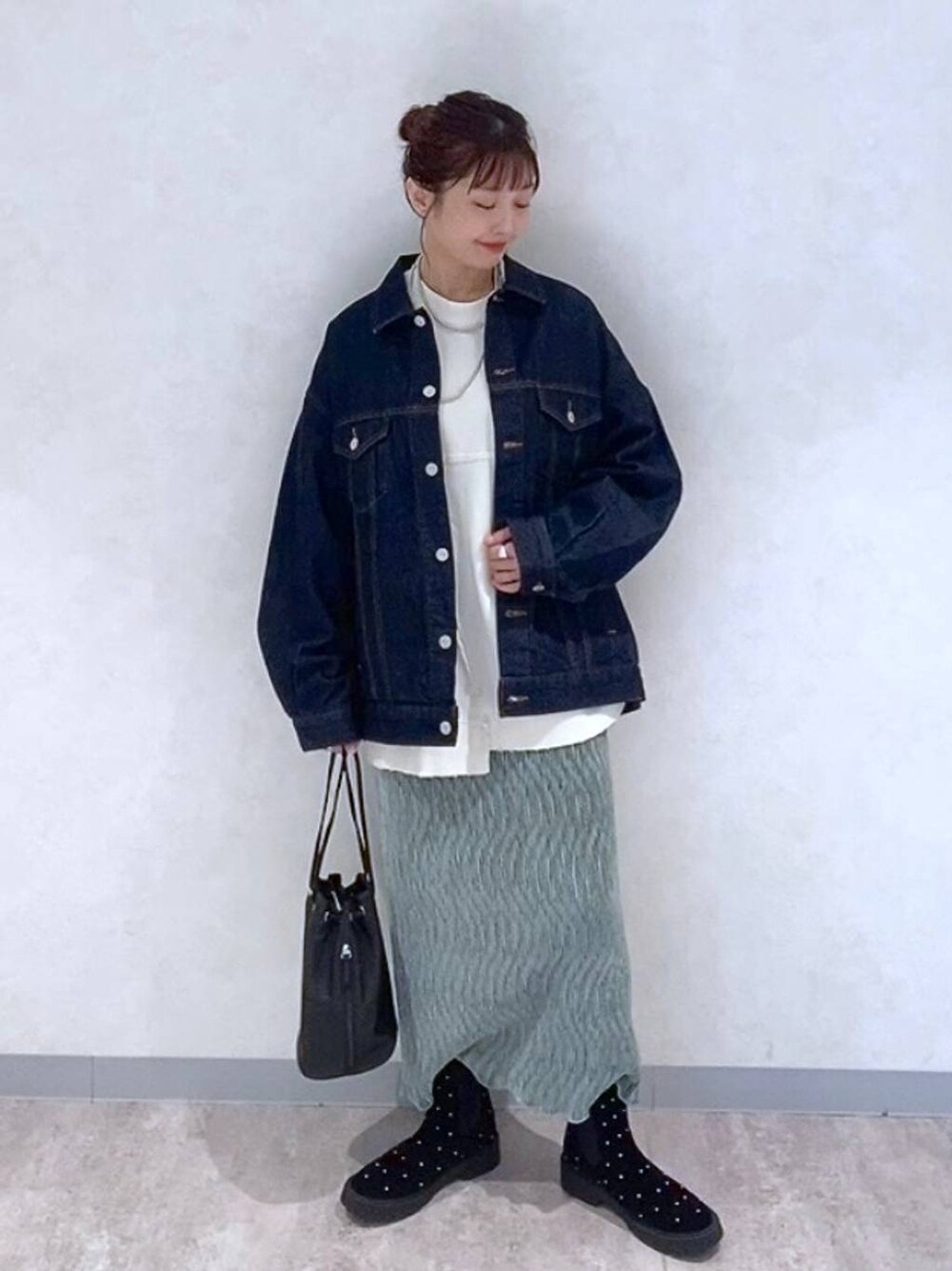⭐各アイテムのおすすめポイント  ̄ ̄ ̄ ̄ ̄ ̄ ̄ ̄ ̄ ̄ ̄ ̄ ̄ ̄ ̄ ̄ ̄ 【トップス】 柔らかいスウェットです! リメイクっぽく切り替えになってるのが可愛いです♡ 【ボトムス】 ストレッチが効いたスカートです 光沢感が可愛く今年らしく着ていただけます! 色物チャレンジしたい方も柔らかい色合いなので 取り入れやすくておすすめです 【Gジャン】 ハリがあり硬めの素材です 着てくうちに風合いが出てきます✨ お尻まで隠れるのでコーデ取り入れやすいです 身幅をサイドのボタンで挑戦できます!