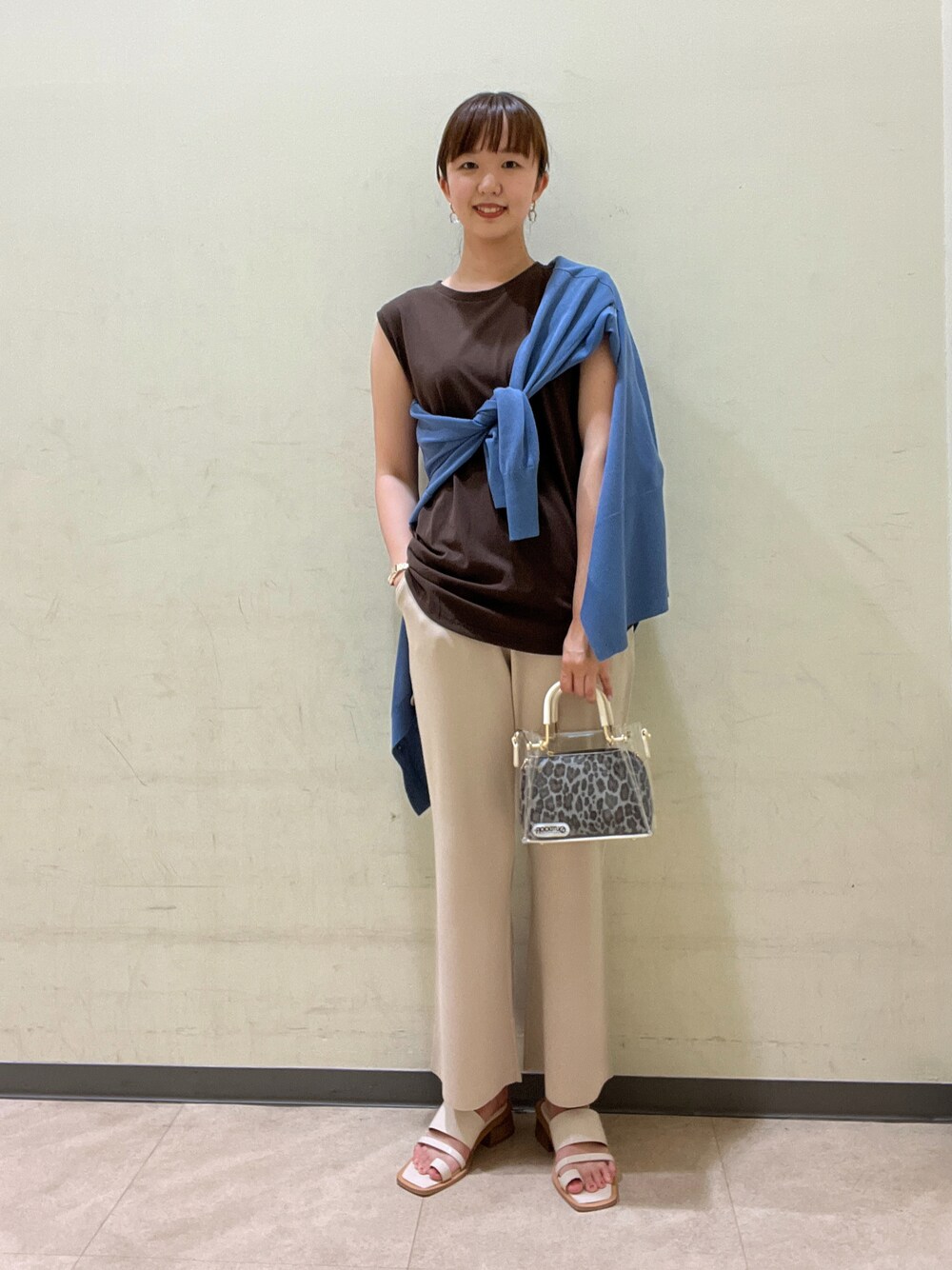 ワンポイントカラーコーデ 梅雨は☔️ 寒いので! 羽織ものが一枚あると、 安心です! イエベ秋でもきれる 青色です🐳