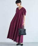 コラボワンピース 一枚サラッと着るだけで華やかなワンピース 布をたっぷり使っているので、歩いた時の裾の揺れる感じがとても綺麗です! 横から見た時に腕がすらっと見えるのがポイントです◎