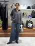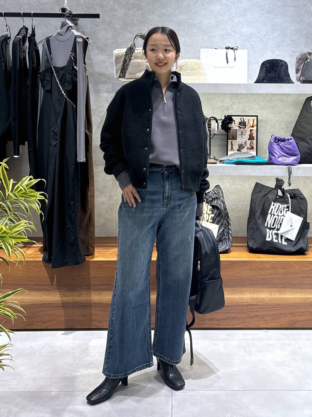 アウター フェルトのような柔らかいお素材です! 厚手のニットもらくらくきれちゃいます! パンツ フレアの形がキレイなデニムです^_^ ウエストゆったりめです