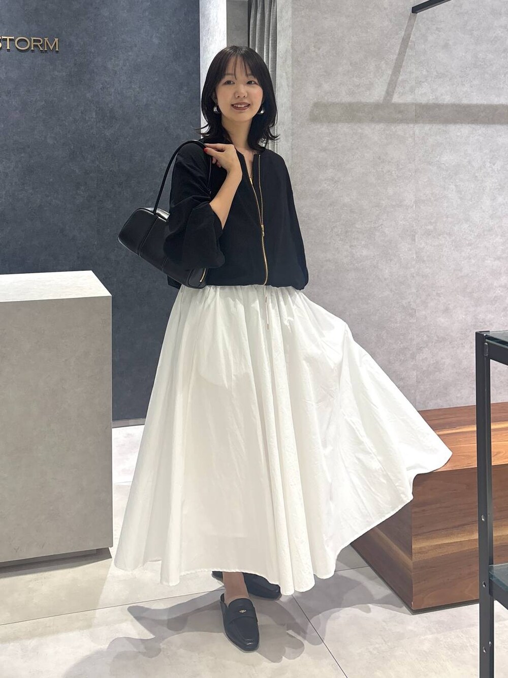 トップス コンパクトな丈のポプリンブルゾン 裾が絞られているので、ボリュームのあるスカートとも相性抜群です◎ 黒は透け感少ないです! スカート ボリュームのあるスカート 広がりがとても綺麗で、フリーサイズですが、丈長めです◎