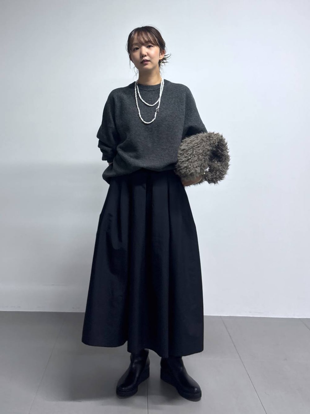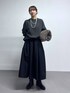 毎年人気のアクアニット! 背中側に入っているこの一本のラインが可愛いんです♡ スカートはシャカっとするハリのあるお素材! スニーカーやブーツでかっこよく合わせるのがおすすめ◎