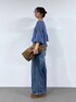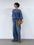 ニット モヘアの透け感が綺麗なブルーニット! お袖のボリュームが可愛いです♡ パンツ 裏起毛のデニムパンツ ウエストを紐で調整できるので、 ベルトいらずです!
