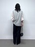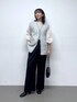 オケージョンコーデ お袖が可愛いモケモケブラウス ツイードのベストと合わせると華やかな印象に◎ ボトムを黒で締めると、 甘すぎない上品なイメージです!