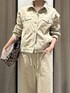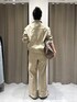 人気のカットデニムシリーズに ベージュ登場! チノパンのようなお色で、オンオフどちらとも合わせやすいデザインです◎ ジャケットは、やや短めなので、 ボリュームのあるボトムと合わせるとバランスよく見えます!