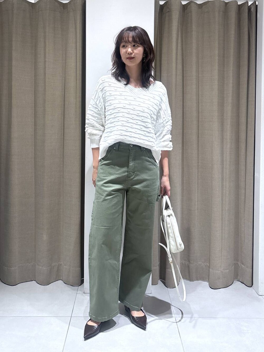 ポコポコが可愛いニット! 襟ぐりゆったりなので、 首周りがスッキリして見えます^_^ パンツ 春先に大活躍のカーキパンツ ストレートシルエットなので、 ダボダボになりにくくスタイル良く見えます!