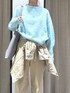 トップス 春カラーが可愛いニット 明るいお色ですが、派手にならないサックスカラーです お袖のリブが長くてかわいい!