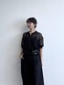 ブラックコーデ 透け感のあるニットは、 オールブラックコーデにぴったり◎ 大きいボタンが可愛いです!
