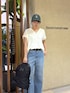 あや(BARNYARDSTORM ルミネ荻窪)のデニムパンツ「BARNYARDSTORM / ソフトウエストワイドデニムパンツ【『BABALOG』チャンネルご紹介アイテム】ウエストゴム / シーズンレスアイテム」を使ったコーディネート