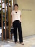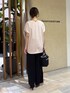 くすみピンクの上品なブラウス 黒と一緒に着ると、 甘さが抑えられてスッキリ着れます!